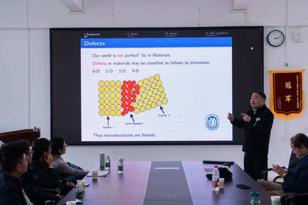 朱佩成教授围绕多晶材料中晶界演化的连续模型展开,重点介绍了其团队提出的新型连续介质模型及其数学合理性分析。报告从物理背景入手,解释晶粒结构演化中的典型现象与主要影响因素,进而引入带有非局部项的偏微分方程模型,分析该模型与传统晶界动力学模型之间的联系与差异。朱教授还结合具体算例,展示了模型在刻画晶界形态演化、反映细观结构特征等方面的效果,指出此类问题在材料科学与应用数学交叉研究中的重要意义。